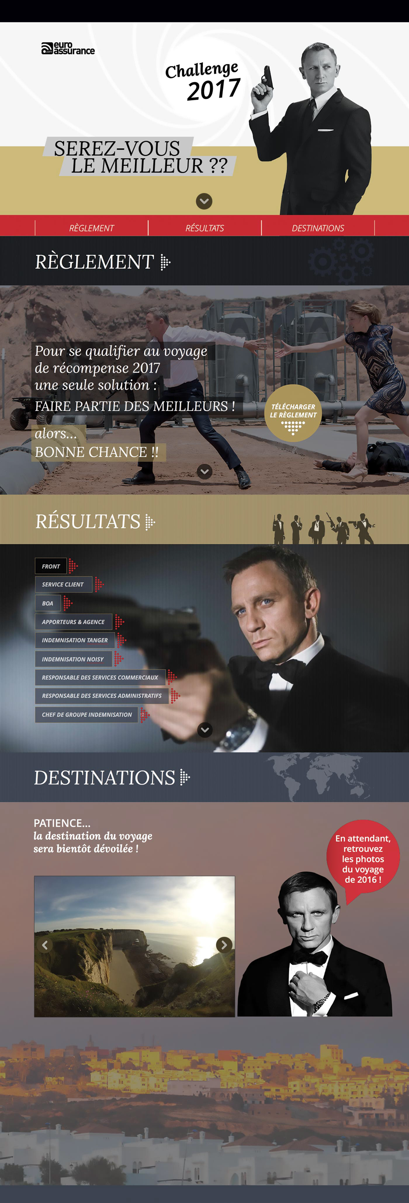 Création et intégration (avec Adobe Muse) du site web one page "Challenge 2017" pour la compagnie d'assurance "Euro Assurance". (Paris - France)