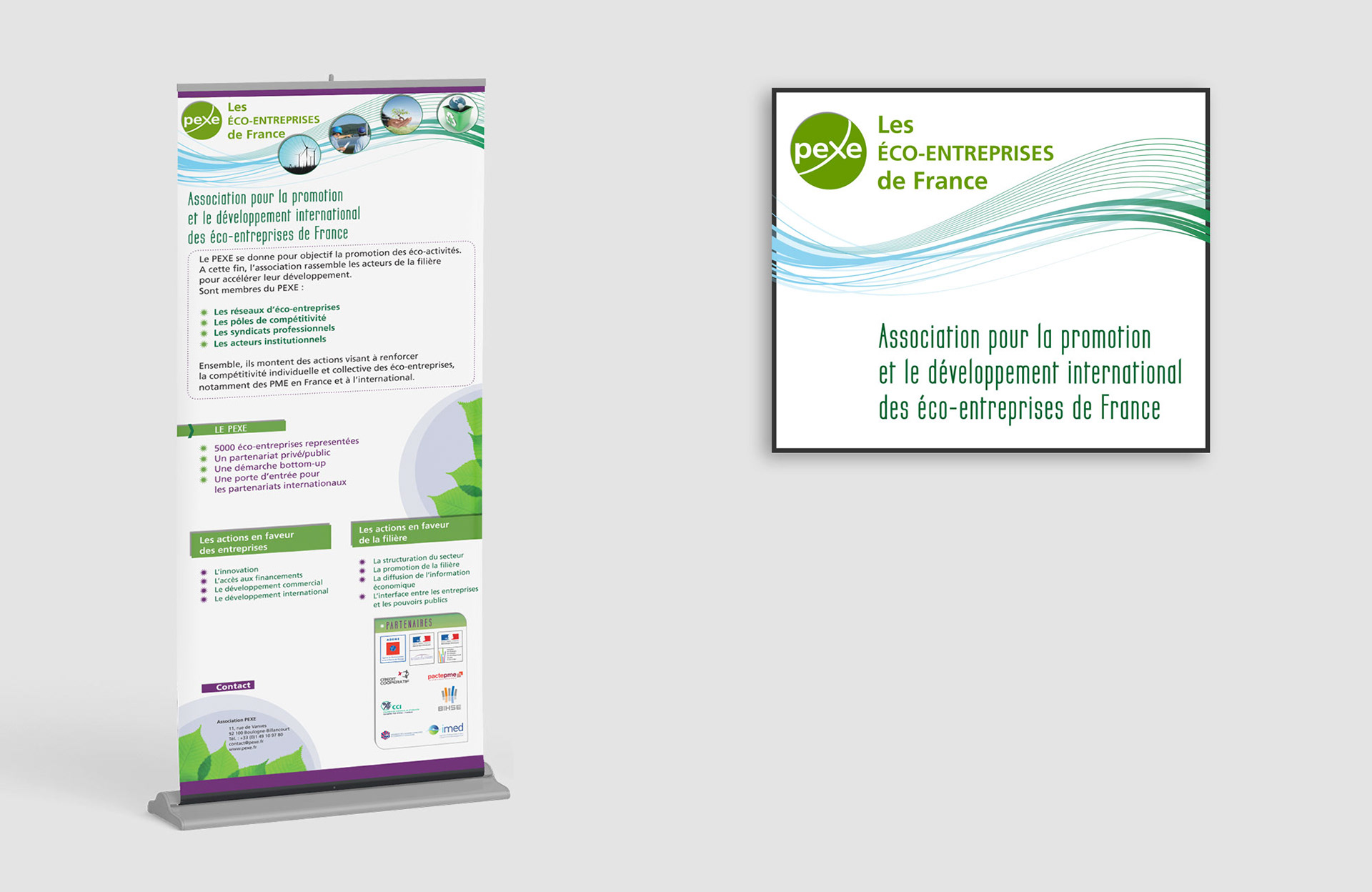 Roll-up et panneau pour l'Association PEXE - Les Éco-entreprises de France